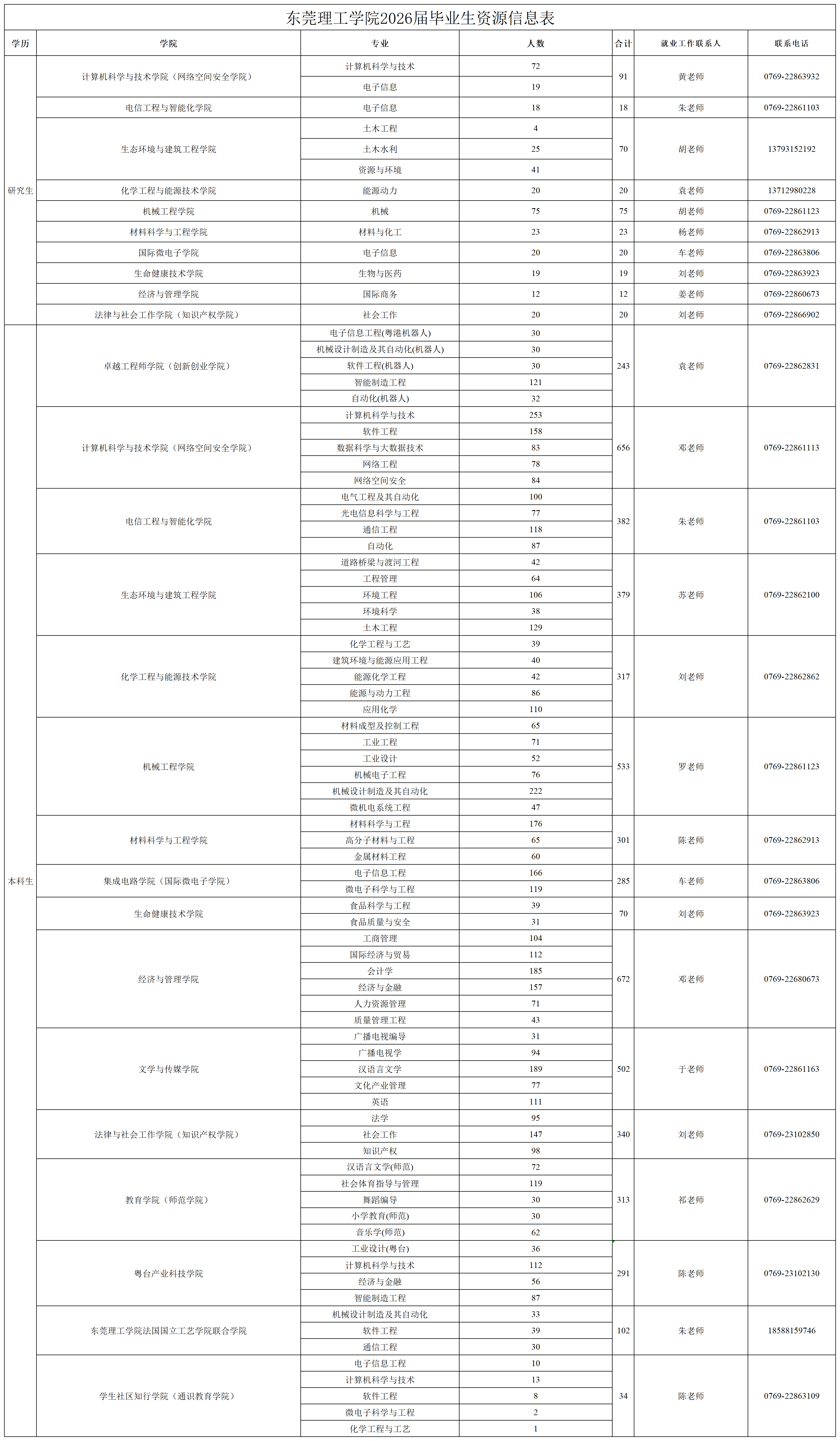 东莞理工学院2026届毕业生资源信息表